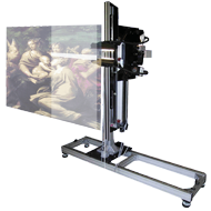 The vertical Spectral Scanner is designed for spectral acquisition of 2D vertical objects such as artworks and paintings. It acquires in one or more stripes depending on object size and spatial resolution. The main software application manages all acquisition parameters, processes the image stitching, and computes reflectance.